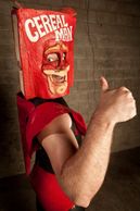 Cerealman was a great foil for Techno Destructo! Not many can withstand the merciless onslaught of everybody's favorite Marauding Cyborg from Outer Space!