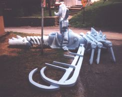 It had to disassemble for shipping. Each piece was suspended by two lines. Nothing was attatched to anything else except by big slots and pegs it was only held together by GRAVITY!